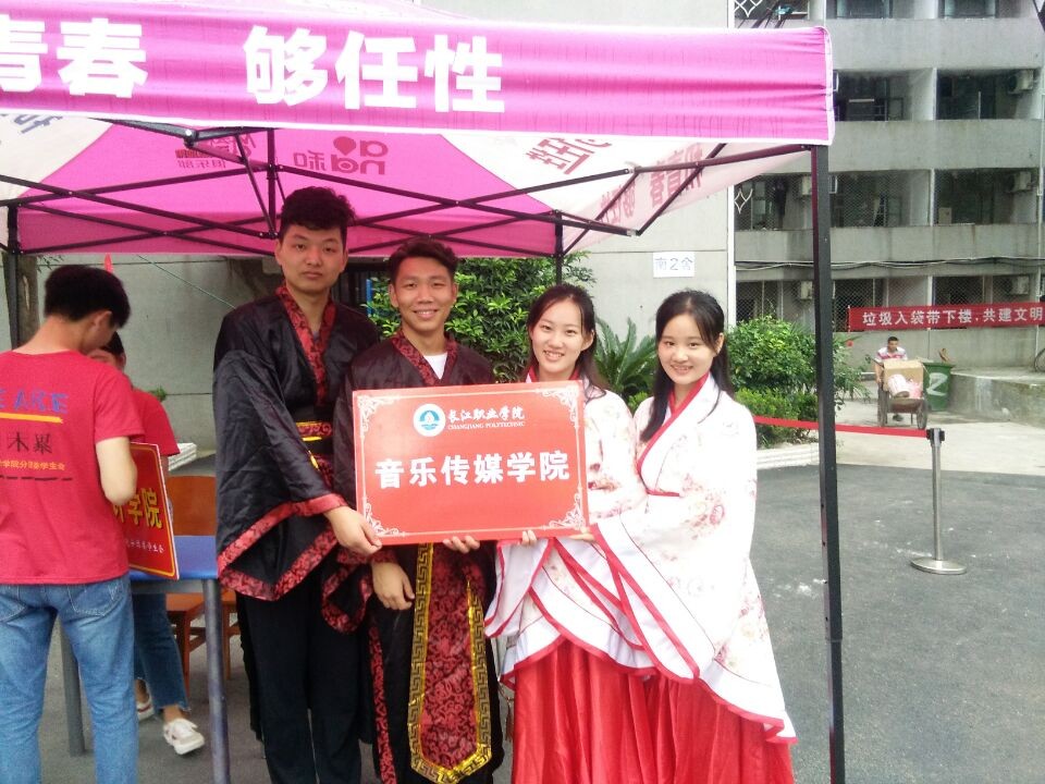 早上七点,老师们身着各色的旗袍早早的在报到处等待着新生。素白的旗袍合宜的搭配着刺绣,又有淡淡的杏子黄色旗袍点缀着几朵白花……融入在嘈杂的大厅,不觉得突兀可惜,却更加温婉动人,还有浓浓的亲切感。有着东方的古典韵味,又有着时尚潮流元素的旗袍,是我院追求的美,追求音乐与传媒碰撞出花样年华。
