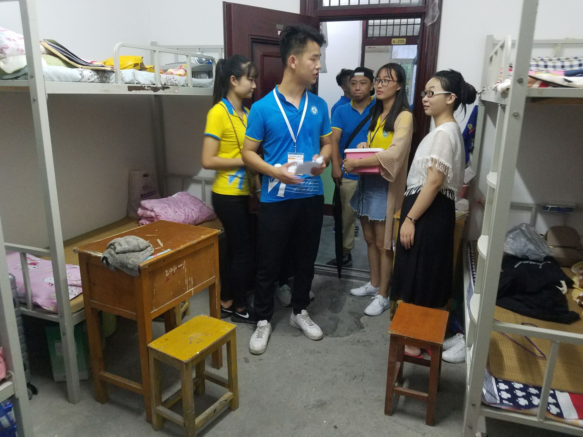 晚上五点半开始,全院领导老师,学生干部都按学校要求,挨个走访新生寝室,了解她们的所需所想,第一时间解决好新生们遇到的困难和问题。