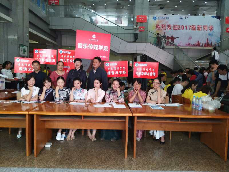 9月 2日早上,在明德楼大厅左方,音乐传媒学院老师们身着淡雅的的旗袍接待报到的新生。这是我院首次以身着花样的旗袍的方式接待新生,学生会的学生们也穿的鲜艳的黄色T恤,用以彰显学院别样特色。新生现已经到195名。