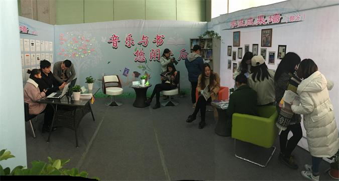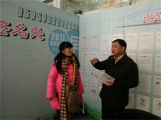 (本网讯:大学生记者伍颖 陶娟) 12月27日—28日,长江职业学院音乐传媒学院新闻采编与制作专业2017届毕业设计展暨优秀作品展在学校图书馆一楼开展。本次作品展以“音乐与书”为主题,通过书吧模式向全校师生集中展示了2014级新闻班优秀毕业设计作品以及2015级新闻班结课考核优秀作品。学校党委书记李永健中午专门来到展览现场,详细观看毕业设计作品,并与老师同学们亲切交流。音乐传媒学院院长李道国、总支书记肖轶文也亲临现场观展。 ?