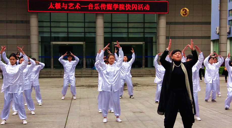 太极拳是中国的国粹,是我们传统文化中的精华。为弘扬太极拳传统文化,3月31日中午就餐高峰期,长江职业学院音乐传媒学院党总支书记肖轶文带领100多名大学生,在南校区食堂外广场“快闪”表演太极拳,展示太极拳的“修炼”成果,成为校园内一道亮丽的风景线,引起数百名师生围观,现场不时响起热烈掌声。