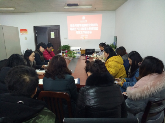 (通讯员 姜群 向峥嵘)1月17日上午10点,为提升科研立项与理论研究能力,音乐传媒学院召开教师业务能力培训的2019年重大科研项目培育工作研讨会。会议由副院长蒋文娟主持,特邀湖北技能型人才培养研究中心负责人王宇博士就科研申报与立项工作进行具体业务指导。音乐传媒学院院长肖轶文及全体教师参加此次研讨活动。