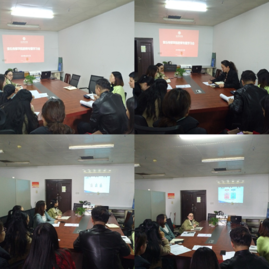 (通讯员 向峥嵘)4月12日下午,在明德楼1016办公室对郭福春教授的《高水平高职学校和专业群建设的理念、政策与实践》专题报告进行了学习研讨。本次会议由副院长蒋文娟主持,教务科、全体专职教师参加学习。