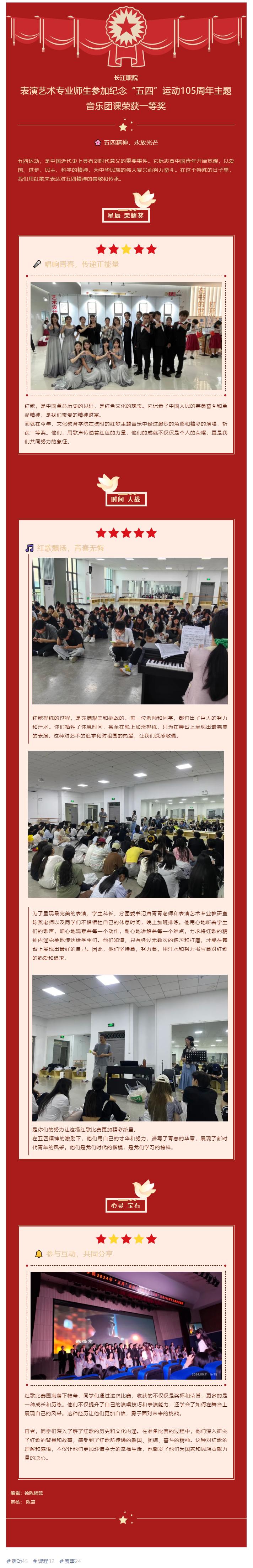 一等奖!我院师生参加纪念“五四”运动105周年主题音乐团课荣获一等奖